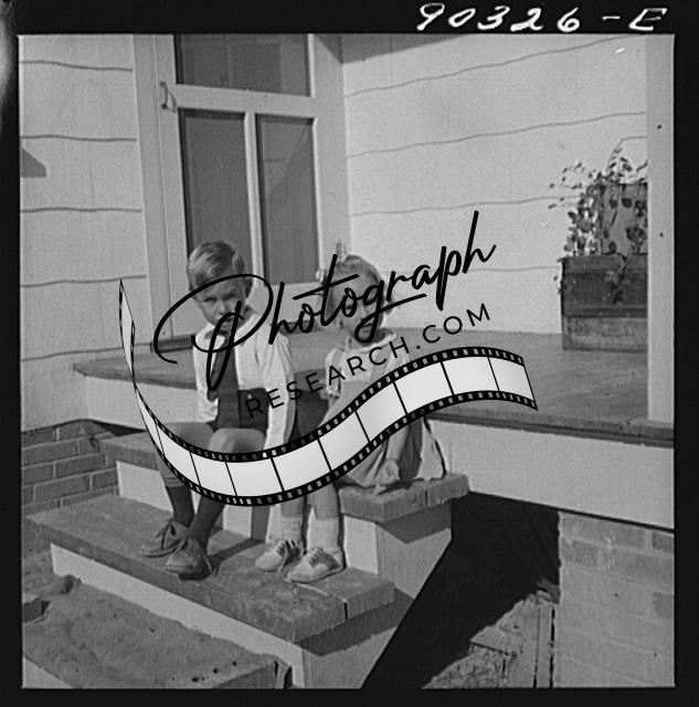 Title: Children of defense workers playing outside their home in Sunset Village, FSA (Farm Security Administration) housing project. Radford, Virginia