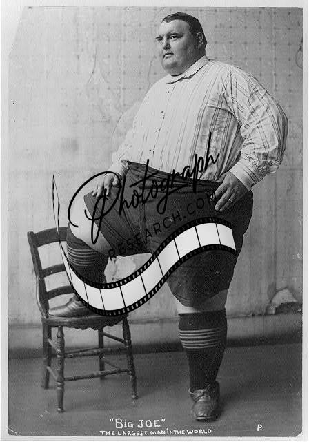 'Big Joe' - the largest man in the world,obese man,foot on chair,c1903,obesity