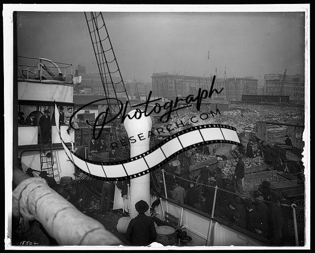 Unloading banana steamer,fruit industry,harbors,boats,Baltimore,Maryland,MD,1890