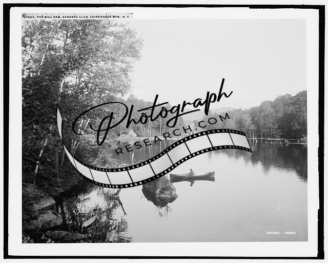 Mill dam,canoes,boats,lake,Saranac Club,Adirondack Mountains,New York,NY,c1909