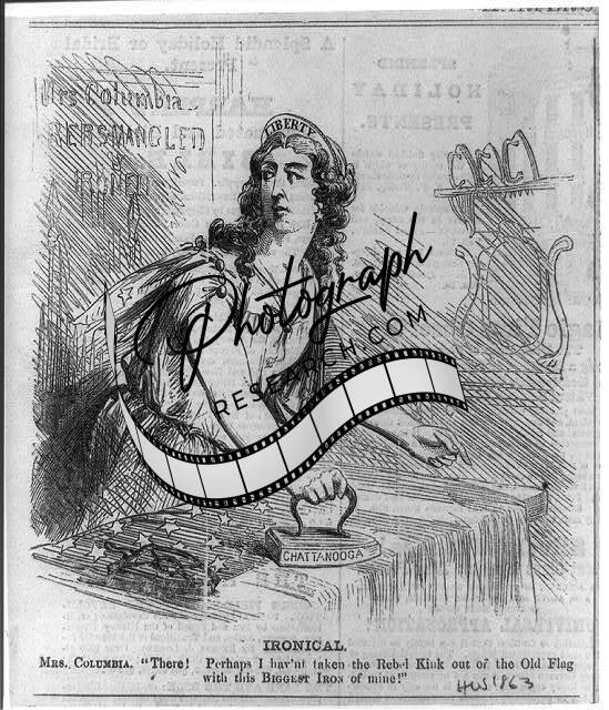 Ironical,Mrs Columbia,Rebel Kink out of the old flag,1863,Liberty,Chattanooga