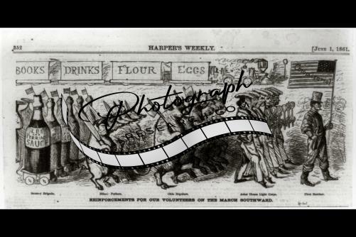Reinforcements for our volunteers on the march southward,1861,man,chefs,cattle