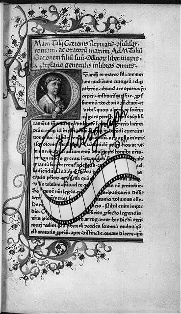 Marcus Tullus Cicero,bust on page of Latin text,Cicero,De Officii,Manz,1465