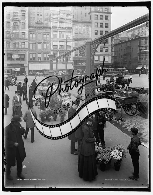 Union Square,plaza,flowers,peddlers,New York,NY,Detroit Publishing Company,c1905