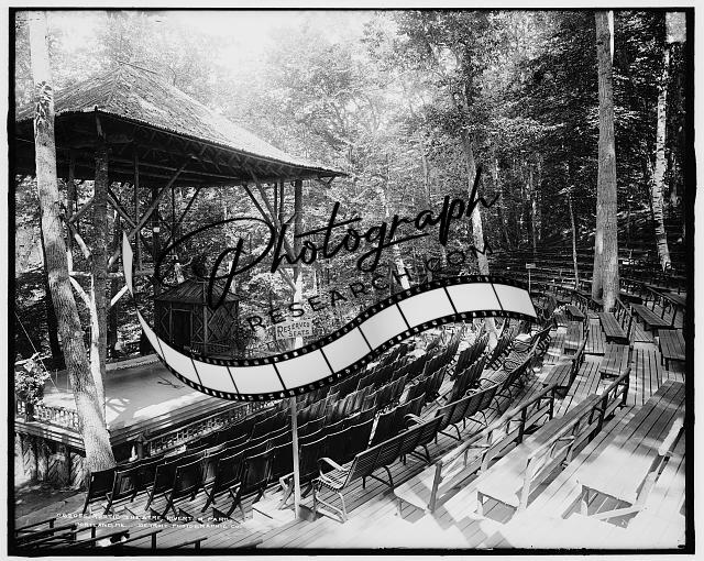Rustic theatre,Riverton Park,theaters,benches,chairs,Portland,Maine,ME,1890