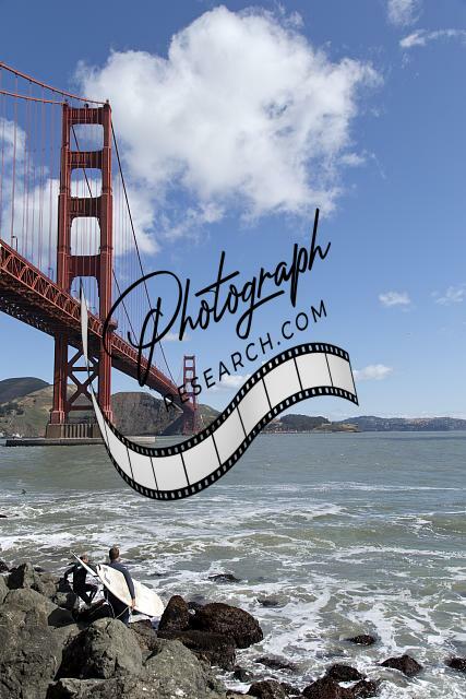 Title: Surfers at the Golden Gate Bridge, San Francisco, California