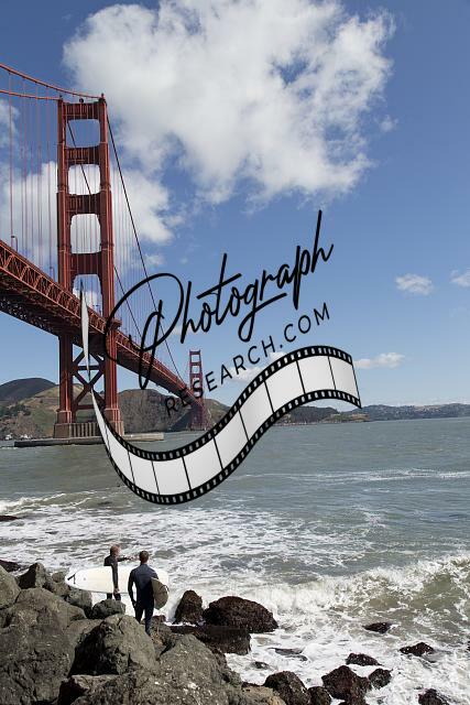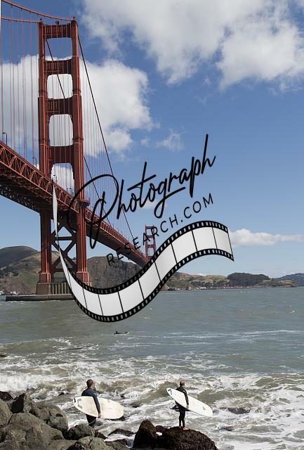 Title: Surfers at the Golden Gate Bridge, San Francisco, California