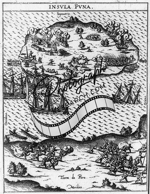Insula Puna,Spanish battling natives on island,Tierra de Peru,1599-1649