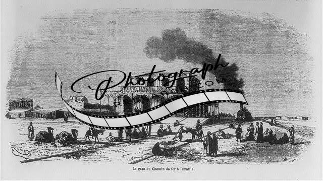 Illustration relating to the Suez Canal,1869: Railroad station at Ismaila