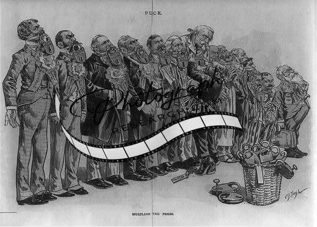 Muzzling the press,Benjamin Harrison,1833-1901,muzzles