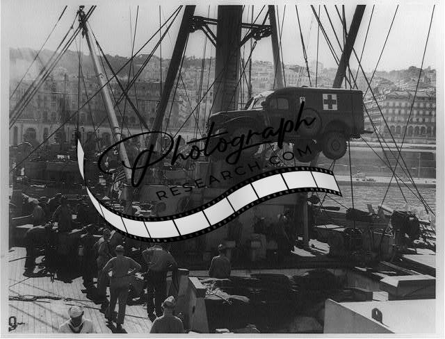 Mercy trucks accompany invaders,US Coast Guardsmen,ambulance,North Africa,1943