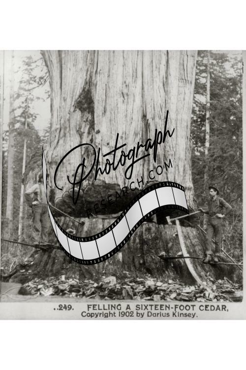 Felling a Sixteen-Foot Cedar Tree,Man Lying in Cut of Tree,Lumbering,Washington