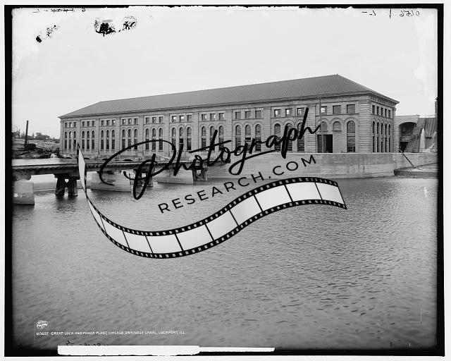 Great lock,power plant,water,Chicago Drainage Canal,Lockport,Illinois,IL,c1908