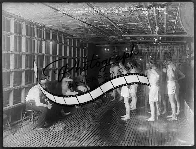 Male lodgers bathing,Municipal Lodging House,N.Y.,clothes taken to be fumigated