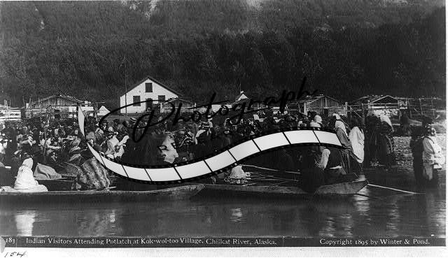 Indian visitors attending Potlatch,Kok-wol-too village,Chilkat River,Alaska,1895