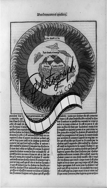 Des Humeurs et qualites,physicis,primary matter,elements,earth,water,fire,1485