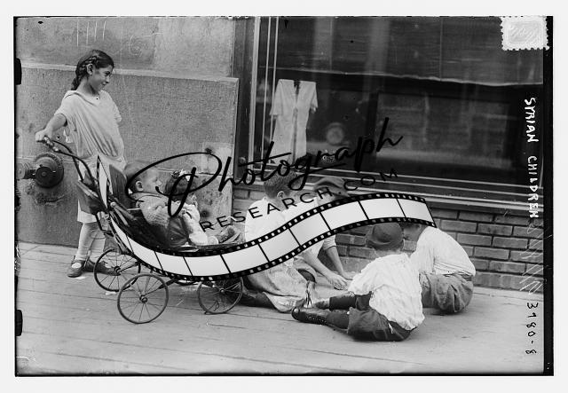 Syrian children at play,boys,little girl,stroller,store front,Bain News Service