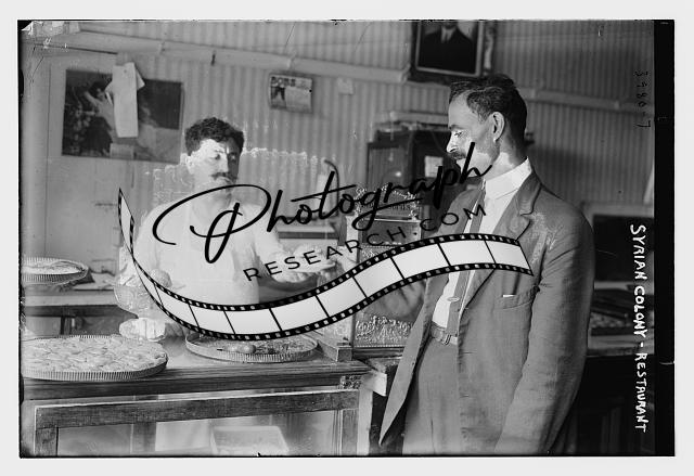Syrian colony restaurant,two men,counter,food,plate of food,cash register?