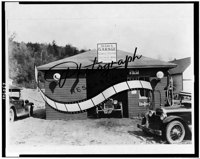Searl's garage,service station,automobiles,cars,buildings,Inlet,New York,NY,1910