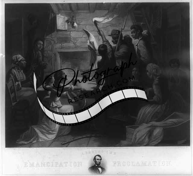 Reading the Emancipation Proclamation,c1864,Fire,African Americans,Fireplace