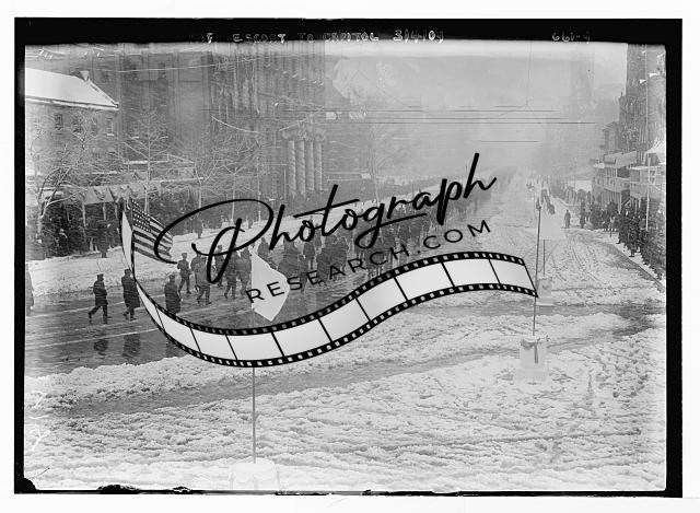 Inaugural parade,escorting Taft to Capitol,Washington,D.C.,US Flag,snow,1909