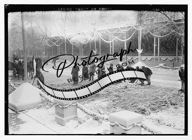 Cleaning snow away from Court of Honor,Washington,D.C.,1909,snow removal,men