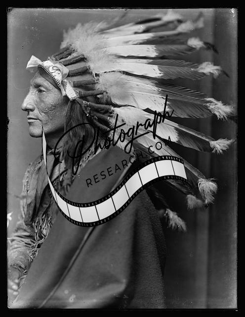 Summary: Takes Enemy, probably a member of Buffalo Bill's Wild West Show, head-and-shoulders portrait, facing right.
