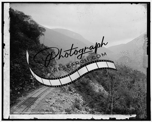 Tamasopo Canon,canyon,above tunnels,Mexican Central Railway,road,tracks,1880
