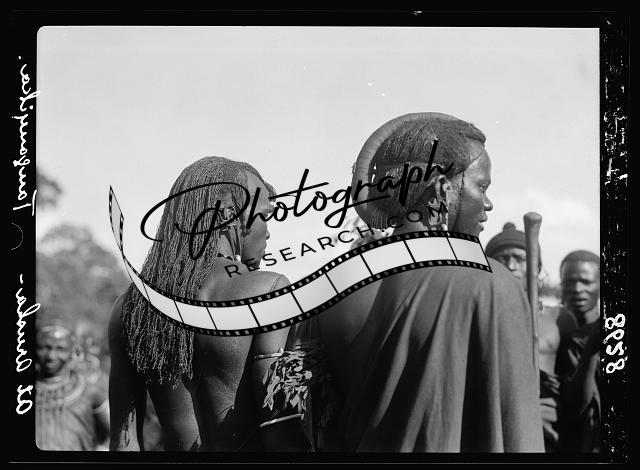 Masai men wearing peculiar wigs,Arusha,Tanganyika,Tanzania,Matson Photo,1936