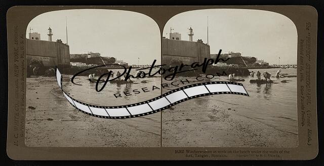 Washerwomen at work on the beach under the walls of the fort, Tangier, Morocco