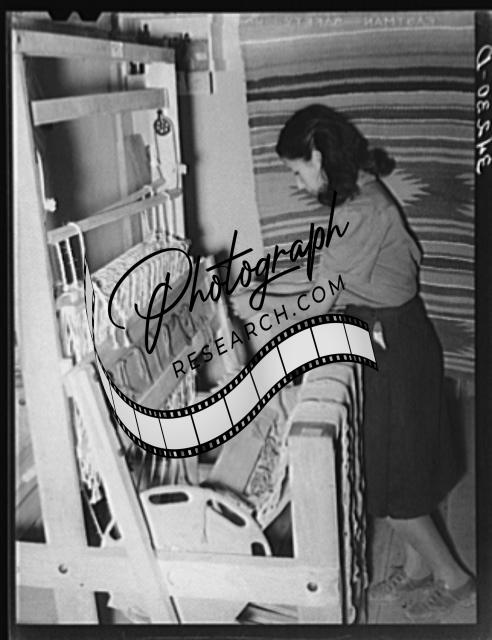 Title: Spanish-American woman weaving a rag rug at WPA (Works Progress Administration/Work Projects Administration) project. Costilla, New Mexico