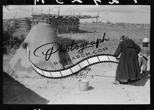 Title: Sweeping coals and ashes from oven before baking bread, Taos County, New Mexico