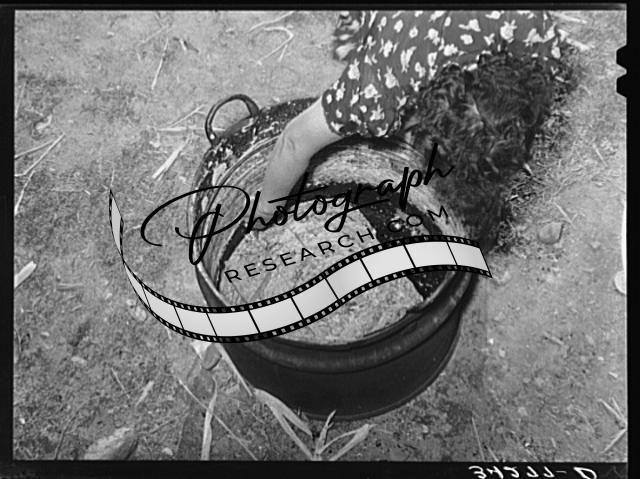 Title: Spanish-American FSA (Farm Security Administration) client feeding her chickens near Taos, New Mexico
