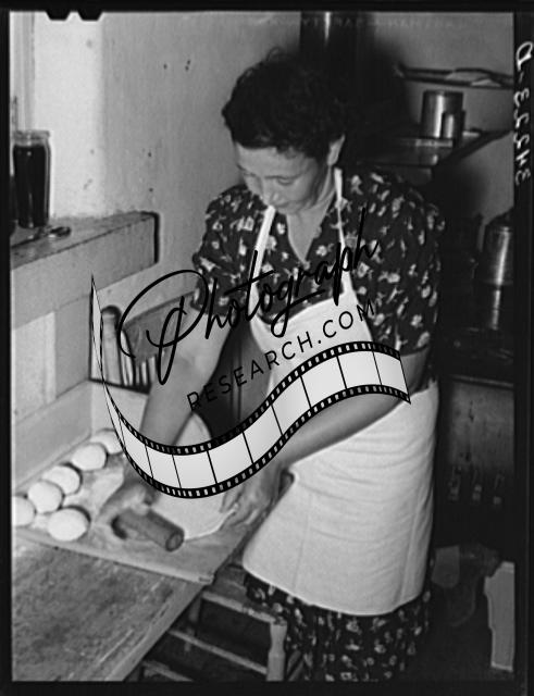 Title: Kitchen scene in Spanish-American home near Taos, New Mexico, Taos County. Making tortillas