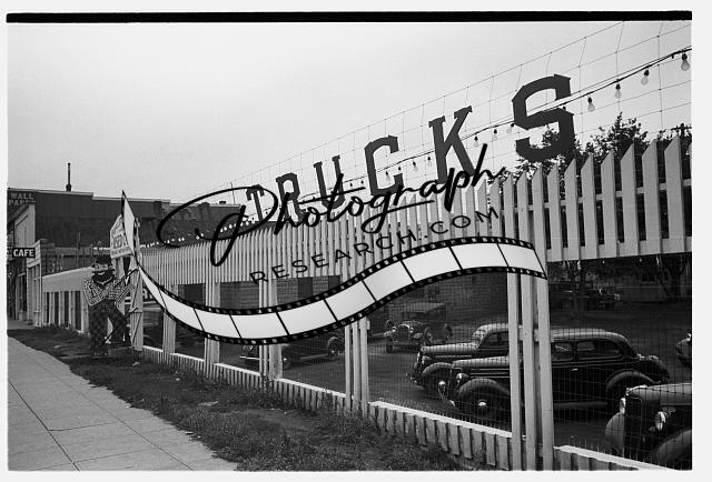 Paul Bunyan at used car lot,Bemidji,Minnesota,MN,September 1939,John Vachon,1