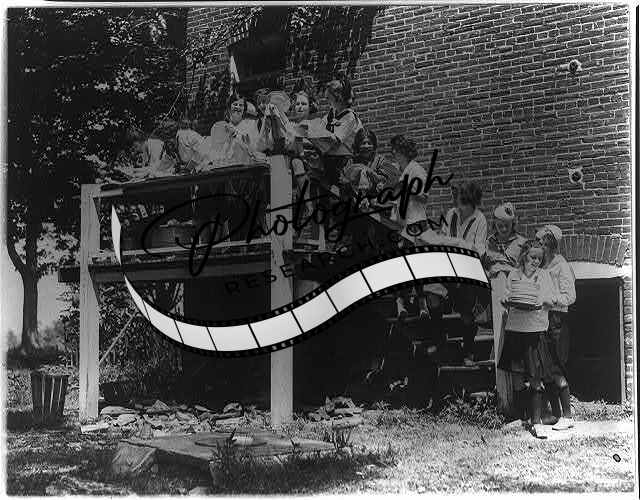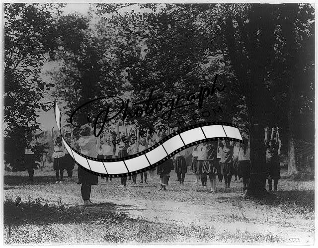 Girls from Washington DC,YWCA camp,Winona,Maryland,doing outdoor exercises,1920