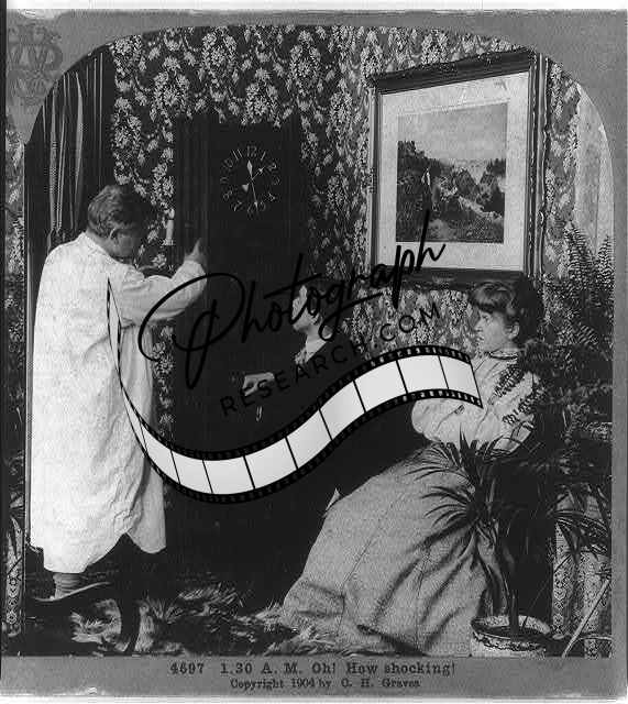 1:30 A.M. Oh! How shocking!,Courtship,Humor,Couple,Clock,c1904,Nightgown