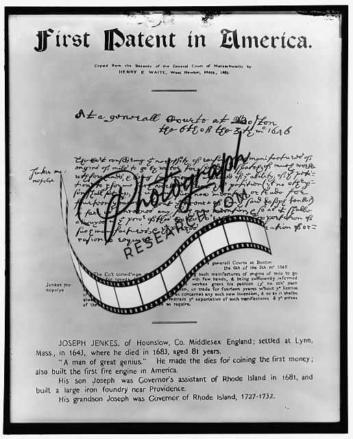 PHOTO ONLY OF Copy of first patent in America,Harris & Ewing