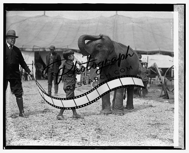 Teddy Roosevelt,3d,at circus,5/13/24,Elephant,Child,May 1924,Entertainment,3
