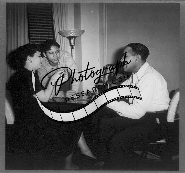 New York,NY,July 1942,African American Couple playing cards,smiling,boy watches