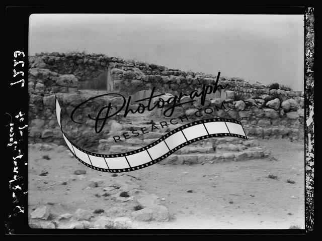 Title: Tel Deweir (Lachish). XVIII-XIX dyn[asty] temple. Top right stone revetment built by expedition to hold steel chute, N.W. of Tell
