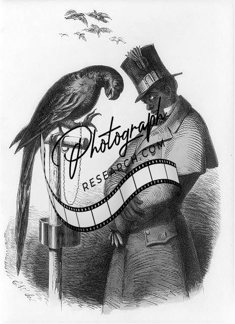 I'm a slave also,because I cannot escape!,Bird,Man,Top Hat,Perched