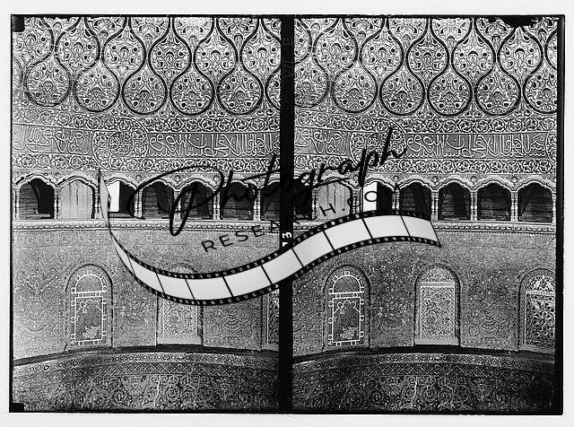 Title: Temple area, Mosque of Omar [i.e., Dome of the Rock], etc. Mosque interior showing the rotunda. Left.