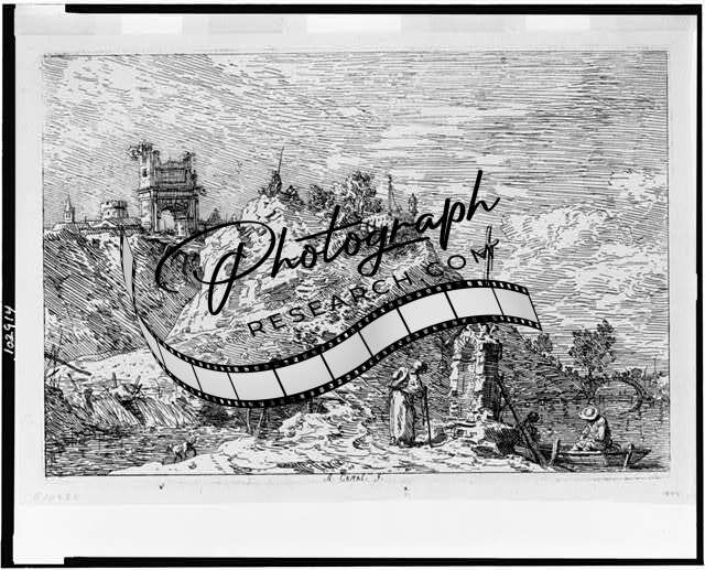 Landscape with a pilgrim in prayer,Canaletto,Praying,c1743