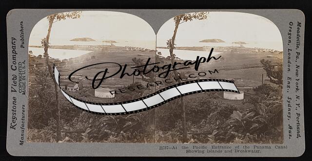 At the Pacific entrance of the Panama Canal showing islands and breakwater