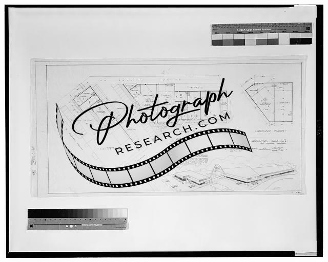Shopping center ("Palmer Shopping Center"), Palmer Highway and 65th Avenue, Seat Pleasant, Maryland. Bird's eye perspective and site plan