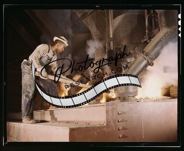 Title: TVA chemical plant, electric furnace loaded with phosphate, vicinity of Muscle Shoals, Alabama