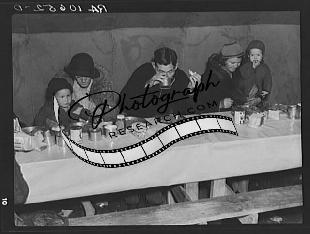 Title: Flood refugees being fed at Tent City, near Shawneetown, Illinois. The people serving food are volunteers from among the flood refugees