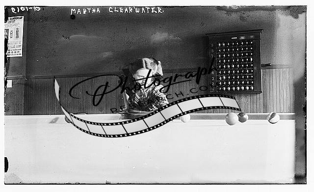 Martha Clearwater,woman,Billiards,bent over pool table,making a shot
