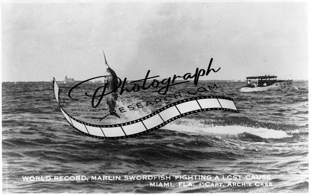 World record marlin swordfish leaping out of the water,Miami,FL,c1934,boat